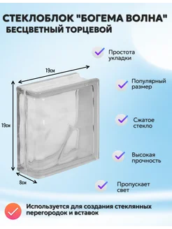 Стеклоблок Богема Волна торцевой прозрачный бесцветный