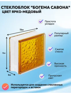 Стеклоблок Богема Савона ярко-медовый