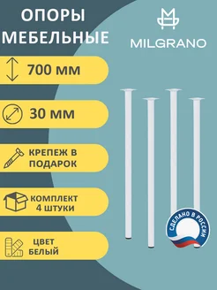 Ножки мебельные 700 мм, 4 шт. D-30 мм. Цвет Белый