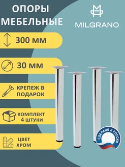 Ножки мебельные 300 мм, 4 шт. D-30 мм. Хром