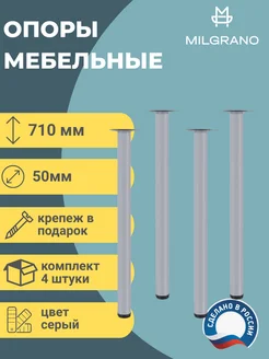 Ножки мебельные, 710 мм 4 шт. D-50 мм. Цвет Серый