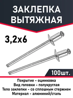 Заклёпки алюминиевые вытяжные 3 2х6 мм 100 шт