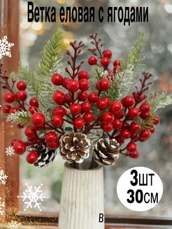 Голубые литые еловые ветки тройки с напылением снега и блеск