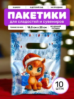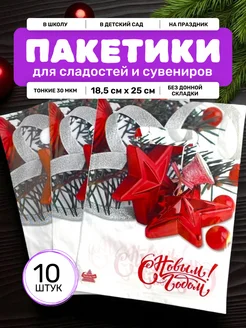 Новогодние пакеты для подарков в детский сад и школу 10 штук