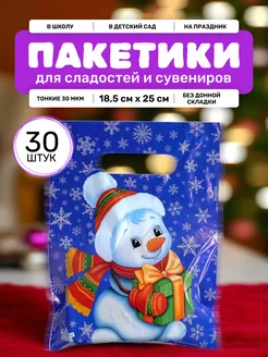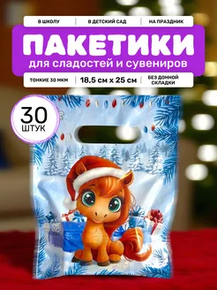 Новогодние пакеты для подарков в детский сад и школу 30 штук