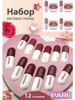 Набор подарочных матовых увлажняющих помад для губ 12 шт