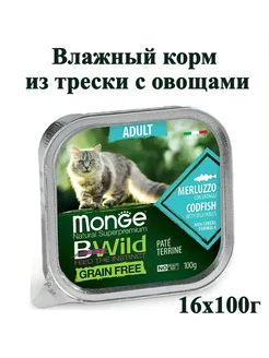 Корм BWILD GRAIN FREE из трески с овощами, 16х100 шт