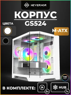 Компьютерный корпус 5 кулеров RGB,контроллер с пультом, белы…