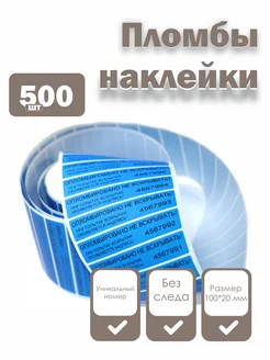 Пломбы наклейки 100 х 20 мм, синие (упаковка 500 штук)