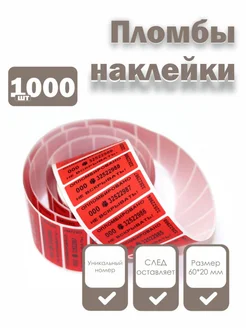 Пломбы наклейки 60 х 20 мм, красные, со следом (1000 шт)