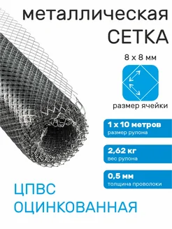 Сетка от грызунов оцинкованная 8х8 мм d=0.5 мм, 10м х 1м