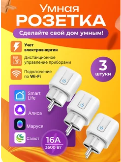 Умная розетка Wi-fi с Алисой Smart Life и таймером 3 шт