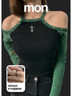 Кроп топ с открытыми плечами и длинными рукавами