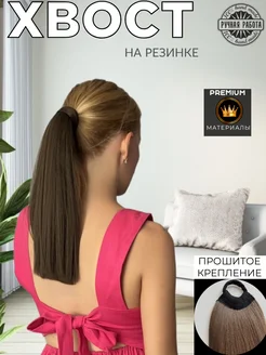 Хвост накладной на резинке короткий 30 см, темно-русый