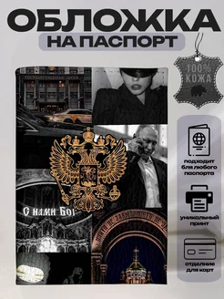 Обложка на паспорт кожаная с принтом герб путин