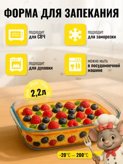Форма для запекания прямоугольная, жаропрочное стекло 2,2 л