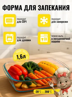 Форма для запекания прямоугольная, жаропрочное стекло 1,6 л