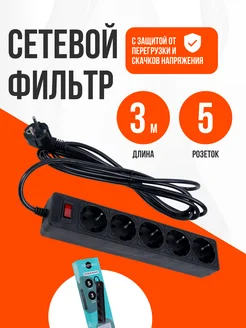 Сетевой фильтр 5 розеток 3 метра 2200 Вт