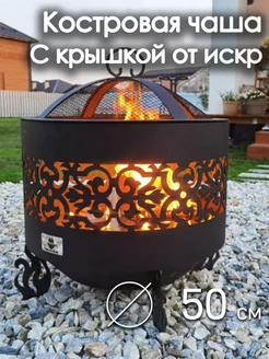 Костровая чаша 50 см Ажурная с крышкой искрогасителем