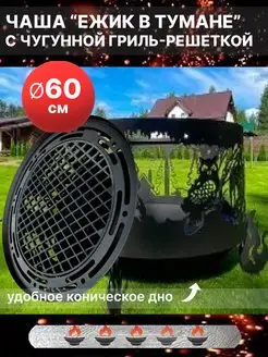 Чаша для костра 60 см Ежик с чугунной решеткой-гриль