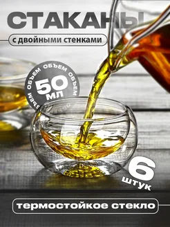 Стеклянный стакан с двойными стенками 50мл х 6 шт