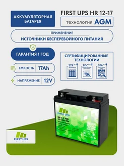 Аккумулятор FIRST UPS HR 12-17 AGM 12 В 17 Ач 181x167x77мм