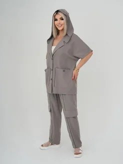 Костюм лен двойка с капюшоном больших размеров 005