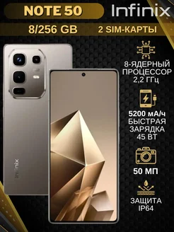 Смартфон андроид Note 50 X6858 8 256 Гб серый титан