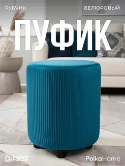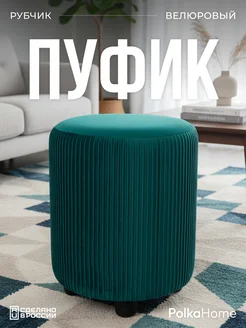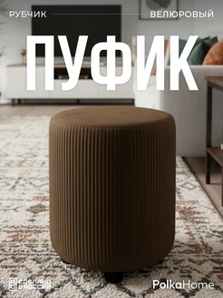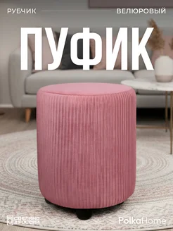 Пуфик велюровый круглый в рубчик для прихожей и гостиной