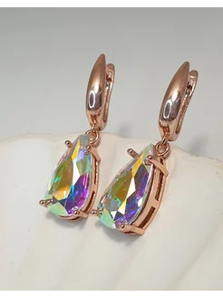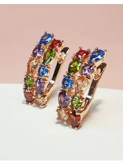 Серьги дубайское золото крупные с цветными камнями дорожки