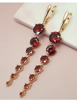Серьги женские длинные бижутерия с красным камнем дорожки