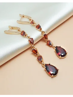 Серьги бижутерия длинные дорожки с гранатом