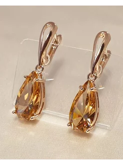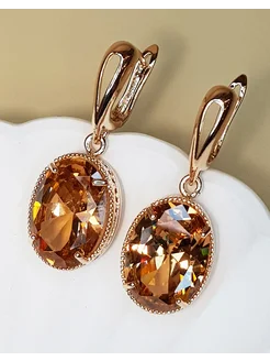 Серьги женские крупные бижутерия с янтарным камнем цитрином