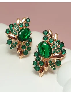 Серьги бижутерия крупные вечерние с зелеными камнями