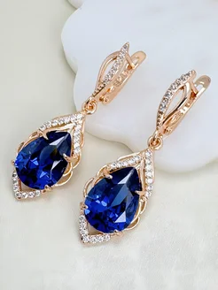 Серьги дубайское золото подвески крупные с синим камнем