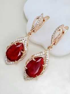 Серьги дубайское золото подвески бижутерия с красным камнем