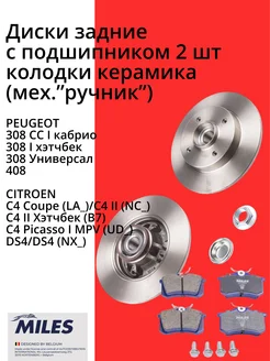 Тормозные диски задние с подшип и колодки Ситроен С4,Пежо308
