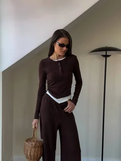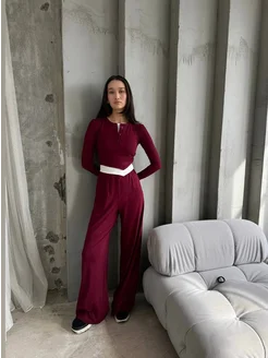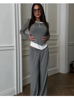 Костюм двойка женский трикотажный с лонгсливом и брюками
