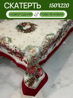 Скатерть гобеленовая 150x220 новогодняя прямоугольная