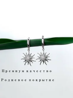 Серьги с английским замком и подвесками Солнце