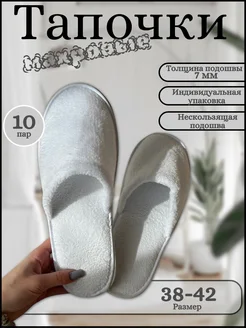 Тапочки одноразовые Премиум 10 пар махровые 7мм