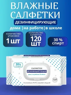 Влажные салфетки дезинфицирующие со спиртом 120 шт