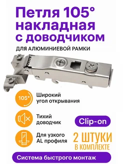 Накладная мебельная петля с доводчиком для алюминиевой рамки