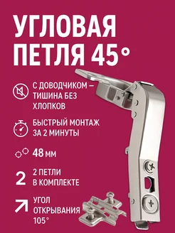 Петля мебельная угловая с доводчиком 45° фурнитура
