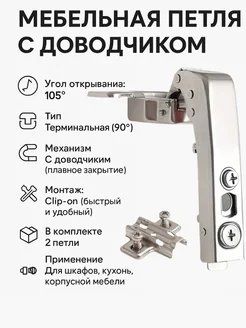 Петля мебельная терминальная с доводчиком 90° фурнитура