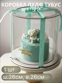 Прозрачная коробка-тубус упаковка для торта 26х26
