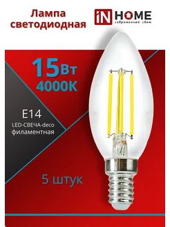 Лампочка светодиодная свеча филамент Е14 15ВТ 4000К 5штук