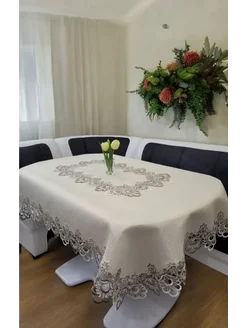 Скатерть Прямоугольная 120х150 тканевая жаккард с кружевом