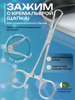 Зажим с кремальерой (Цапка), изогнутый 130 мм
