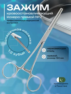 Зажим Кохера кровоостанавливающий зубый 1х2 прямой № 2 160мм
